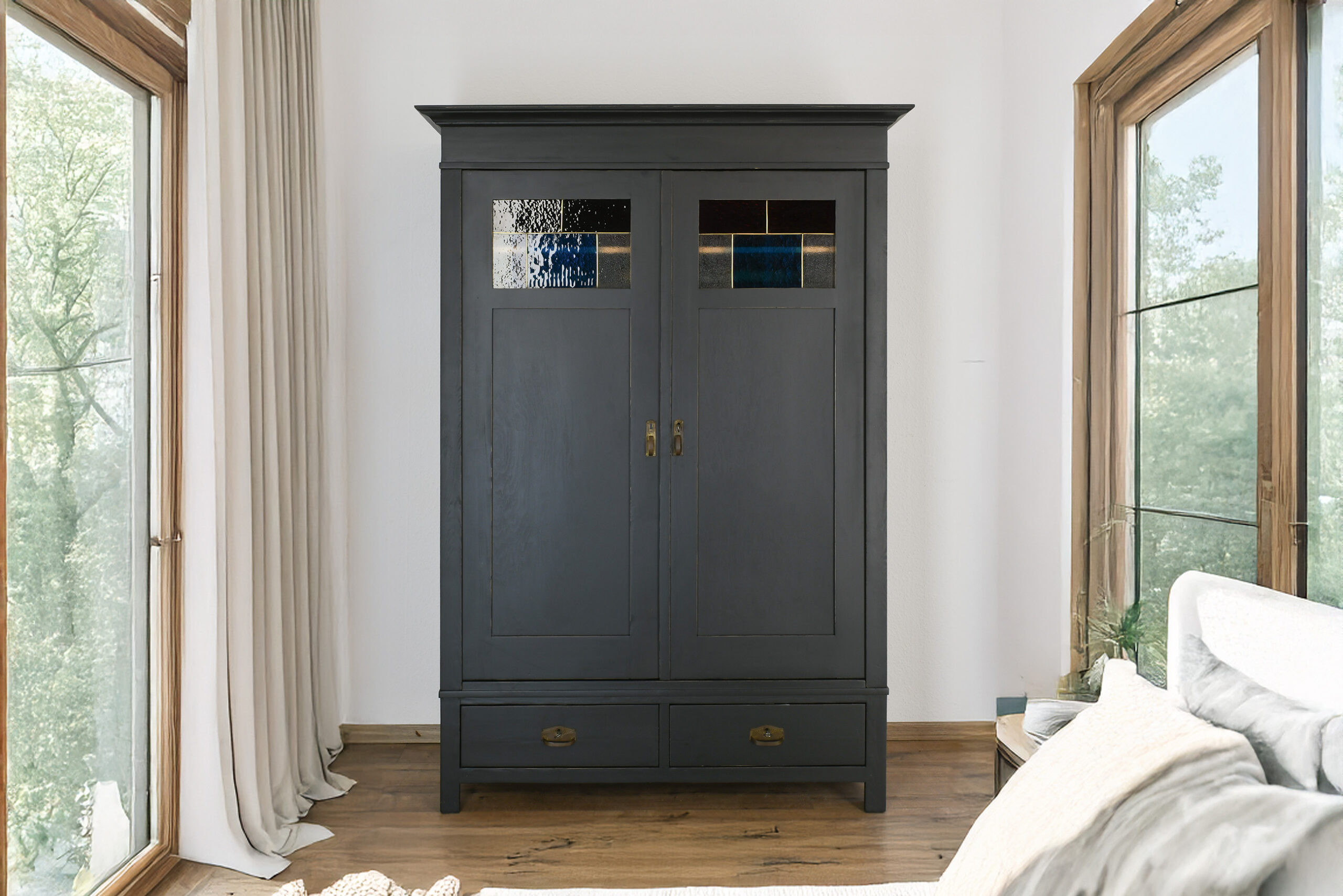 - Highlight: Originale Bleiverglasung mit farbigen Ornamentglasscheiben