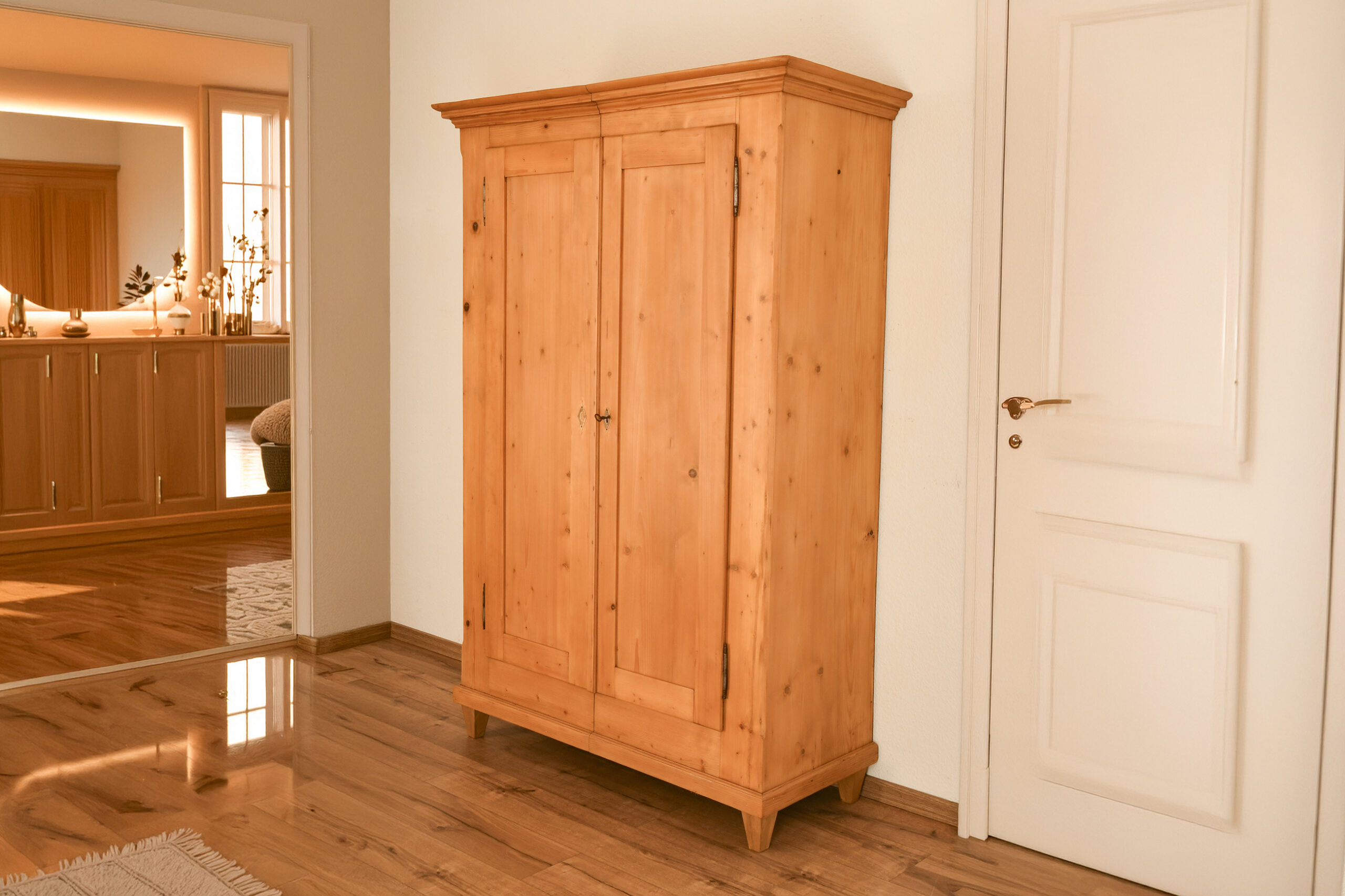 Ein authentischer Biedermeier-Schrank, der durch seine klare Form, natürliche Ausstrahlung und Alltagstauglichkeit überzeugt – ein Stück Geschichte, das in jedem modernen Wohnkonzept seinen Platz findet.